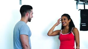 While driving past, Maya sees this guy had turned his garage into a music studio. She loves music and decided to have a little fun. Thinking the owner of the place wasn’t home, she sat down at the drums and knocked out a beat only to be interrupted by the owner when he came out to see what the hell she was doing. He wasn’t happy about her just walking into his garage, but he did love how she looked in the skintight dress. Taking his shirt off, she couldn’t keep her hands off his body. Maya peeled the dress off, dropped to her knees, and took his big cock in her mouth. She had always wanted to fuck a musician, so when she laid back on the couch and let him bury his cock in her wet pussy, she started cumming almost immediately. In love with his cock, the exotic hottie came over and over, begging him to never stop. She rode him until she came so many times she worked up a sweat then she opened wide so he could bust a nut on her face and in her mouth.